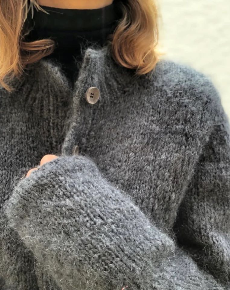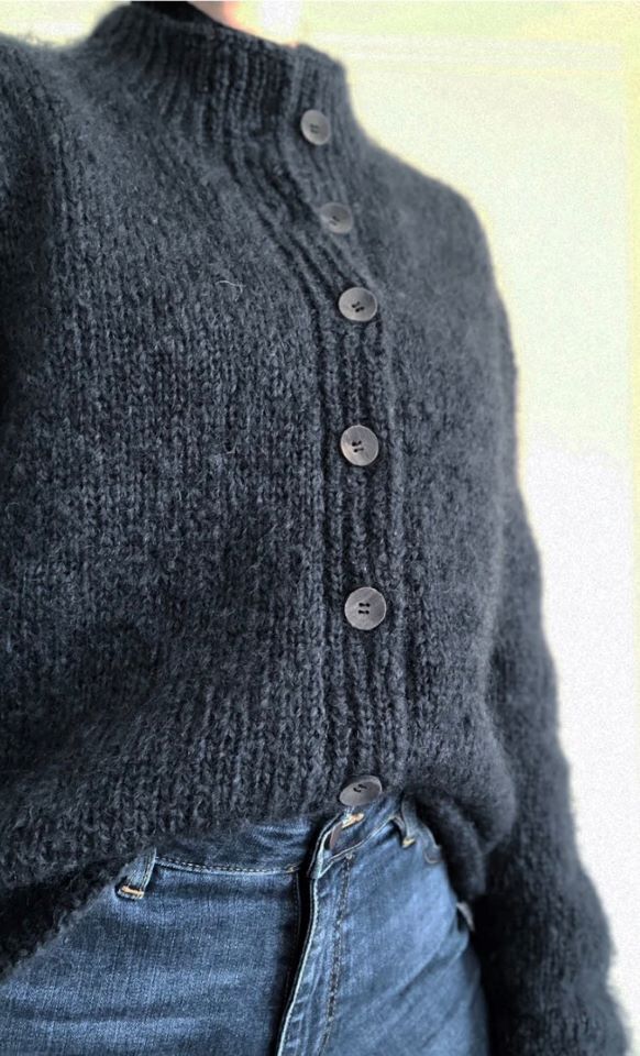 a very classic crew neck mohair cardigan pattern or choose the higher neck jacket version with wider cuffs