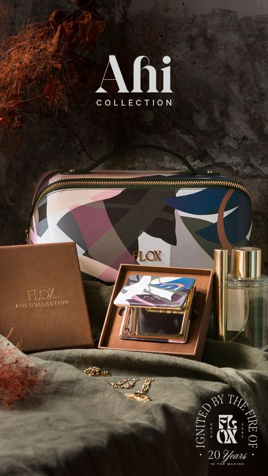 Designed for beauty on the go, the Ahi Compact Mirror is both practical and effortlessly chic. Wrapped in printed vegan leather featuring a signature FLOX artwork, this stylish essential fits seamlessly into any bag. Inside, one regular and one magnifier mirror ensure you’re always ready for a quick touch-up. With an easy snap-close design and elegant gift box packaging, it’s a perfect treat for yourself or someone special.