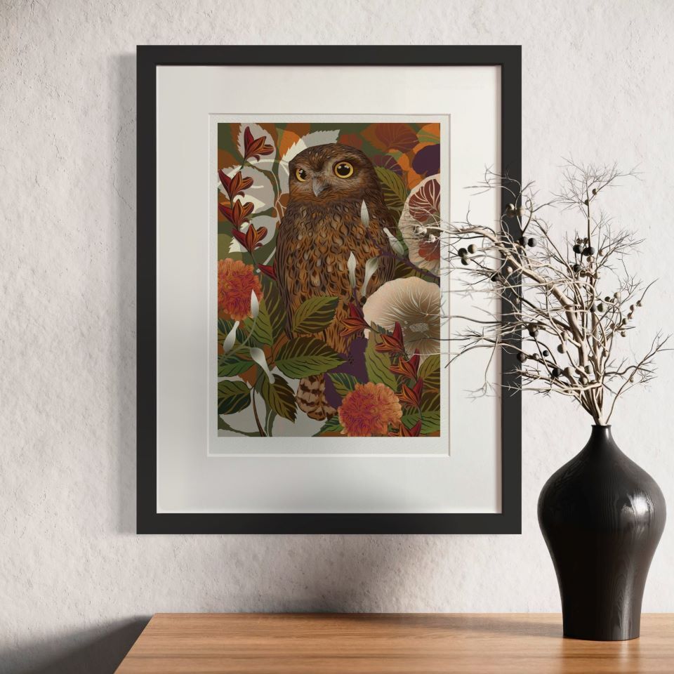 Autumnal Ruru - Print - Unframed A4 - by Flox