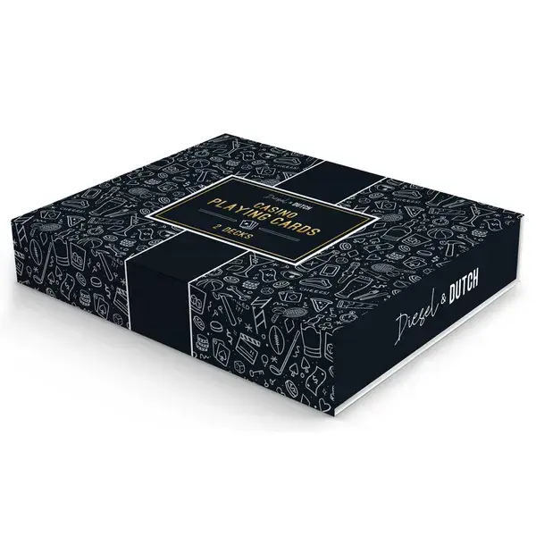 Two 54 piece quality casino playing card decks, with cards featuring contrasting Mad Men inspired designs. Hours of fun and entertainment playing with 3.5 x 2.4 inch playing cards. After play, the cards can be packed away in the storage tray and box for next time.