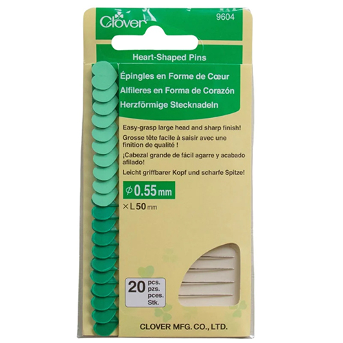 New to Clover's pin series are these cute and practical heart-shaped pins. The heart-shaped head makes them easy to grab, and the sharp finish makes them easy to use. The flat head is convenient for machine stitching as the large head is easily grasped while sewing, allowing for easy removal. The flat head, although not heat resistant, also makes ironing your project easier.