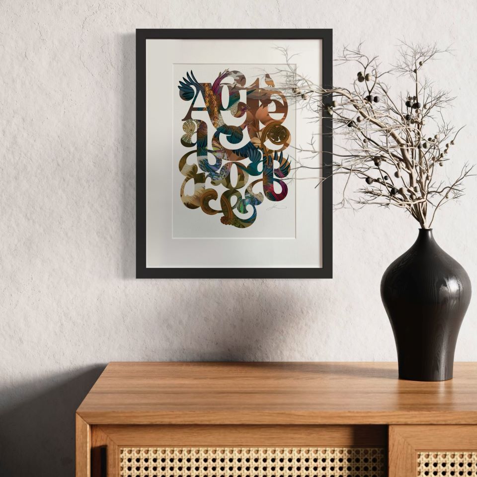 Marking two decades of creativity and innovation, Dear Aotearoa Boutique Print has been designed to honour the artistry and legacy of FLOX, one of New Zealand’s most celebrated artists and business pioneers. This piece encapsulates the spirit of Aotearoa, blending native flora and fauna with bold, floral typography that speaks to FLOX’s distinctive style.