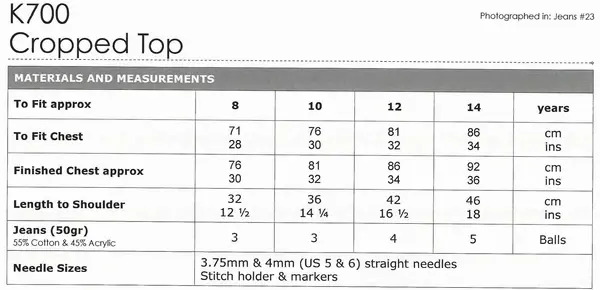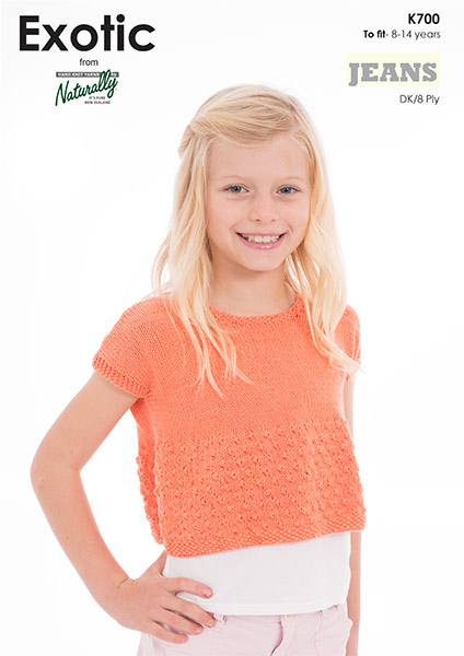 K700 Exotic Jeans Cropped Short Sleeved Top - Knitting Pttern - DK Cotton - Naturally Yarns