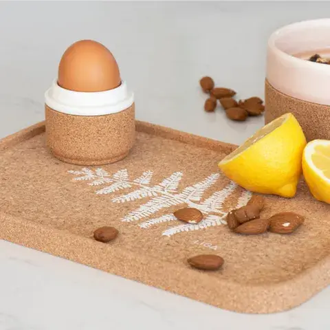 A small cork tray, perfect for holding your beverages, stylish, durable and easy to clean.