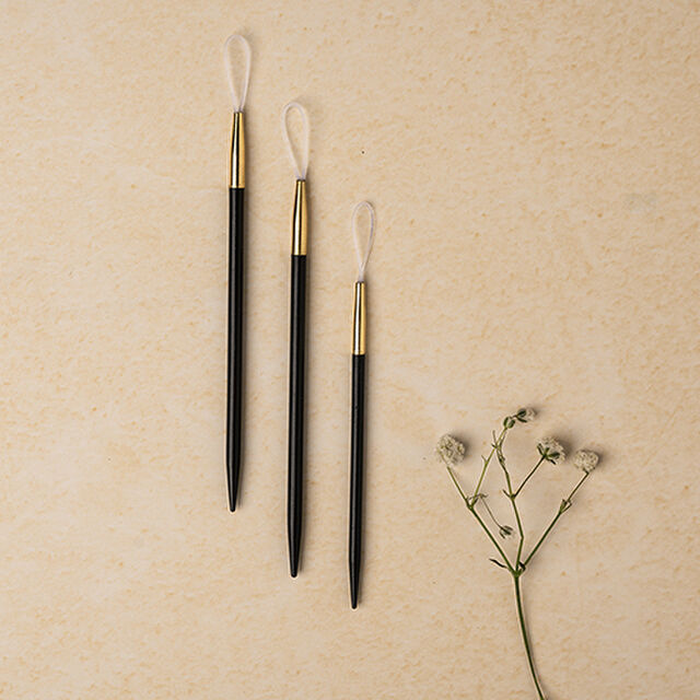 This smooth, large-eyed wool needle is the ideal tool for important finishing work. Made of sustainable Ebony, the liquid silk finish ensures that it will glide through the finished knit material without snagging or splitting yarn. Each package contains 3 needles.
