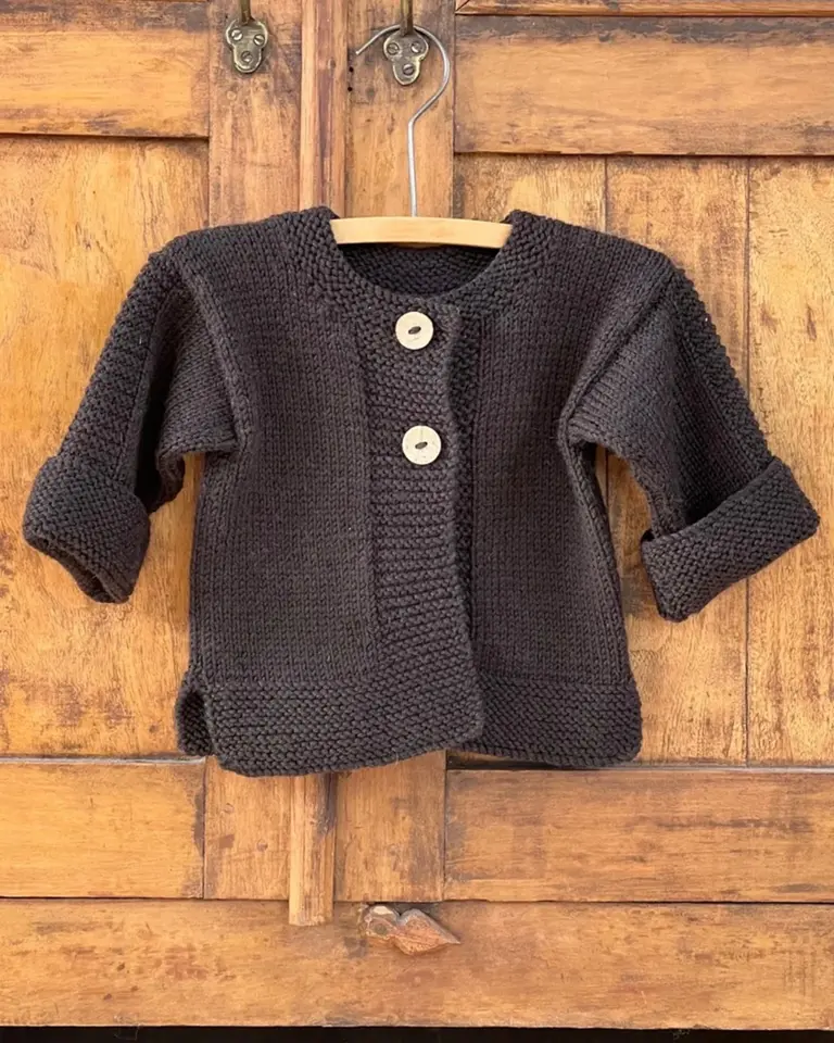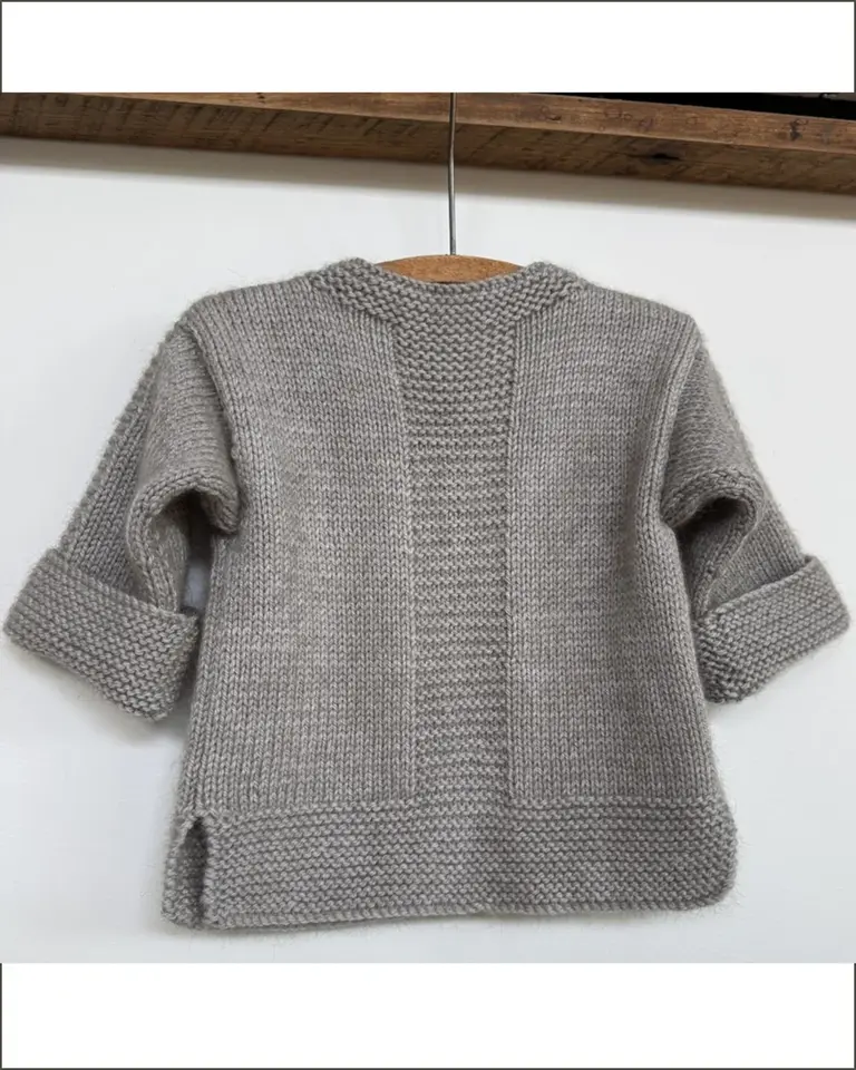 The body is worked seamlessly in one piece to the armholes, fronts and backs are then worked flat to the shoulders. Jacket is designed for 8-12cm positive ease. Cuffs are designed to be warn folded (unfold for approx 5cm extra length). There is an option for one to three buttons