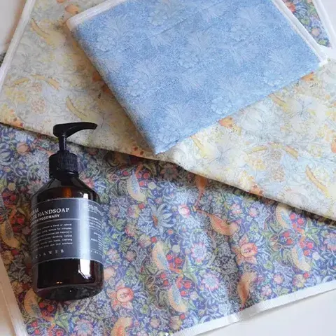 Made in Nara, the dish cloth features a 6 layer weave that increases water absorbency and durability. Textured surface means better cleaning power while damp. Dries quickly after use. Fabric gets softer with use. To achieve softness faster, soak in hot water for 5 minutes. Avoid contact with bleach and do not put into the dryer.