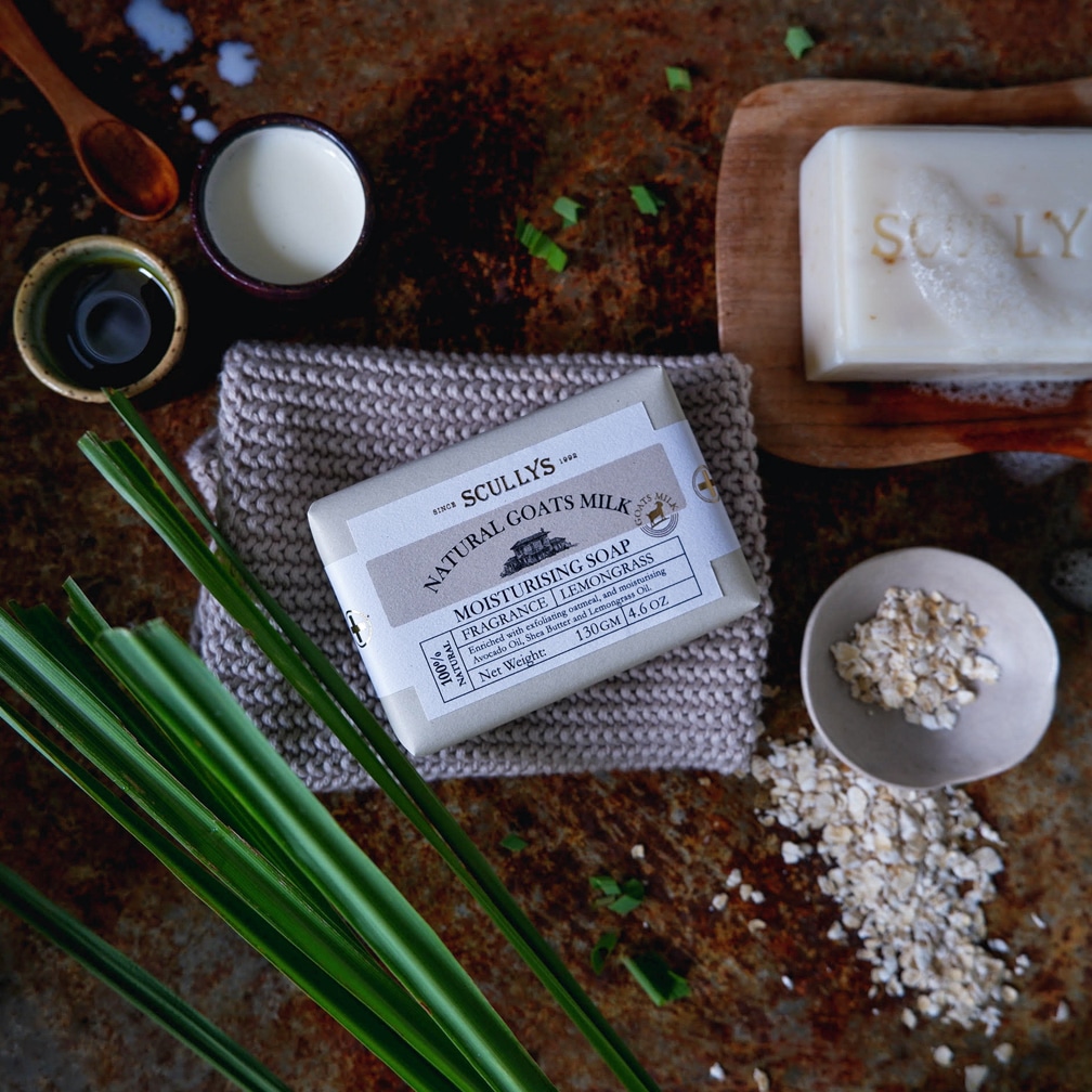 Naturally high in saturated and unsaturated fats, goat’s milk creates a soap that is supremely creamy, gentle, and deeply conditioning for the skin. This formula is further enriched with a blend of moisturising ingredients, including Lemongrass Essential Oil, Avocado Oil, and Shea Butter, to soften and soothe.