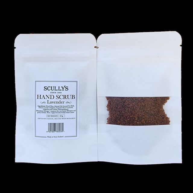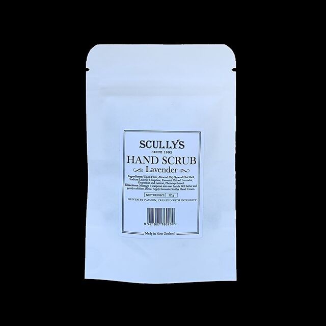 Directions: To soften and cleanse, massage 1 teaspoon of scrub into wet hand, scrub to form a lather, rinse and dry. Follow with your favourite Scullys Hand Cream.