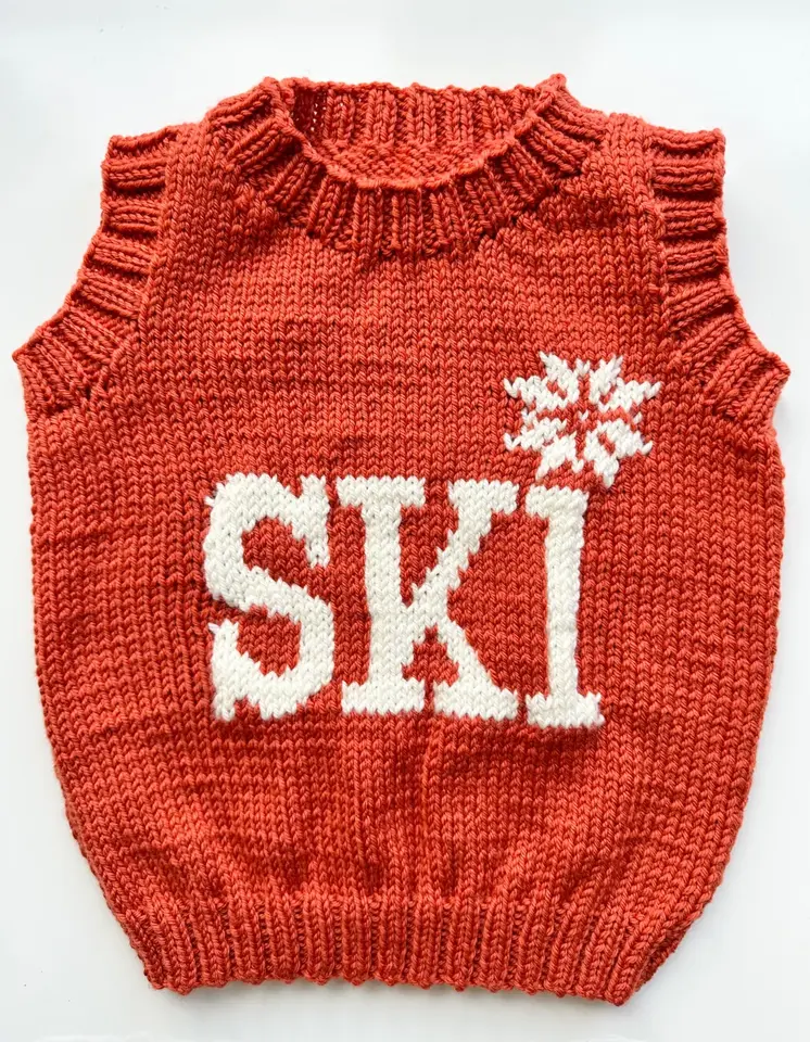 We love winter pass-times, can you tell ?! The ski vest is a crew neck vest for kids with fun optional 'ski ' design with inspiration from our friend Nikau